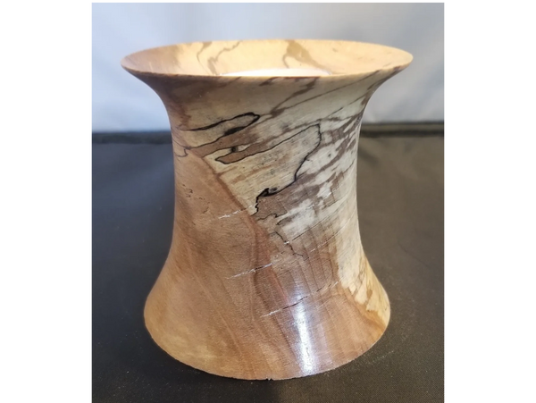 A beautiful spalted cherry tea light holder. A great focal piece wifh lots of character and striking contrast and figure. 3.5' W x 3.25' H.